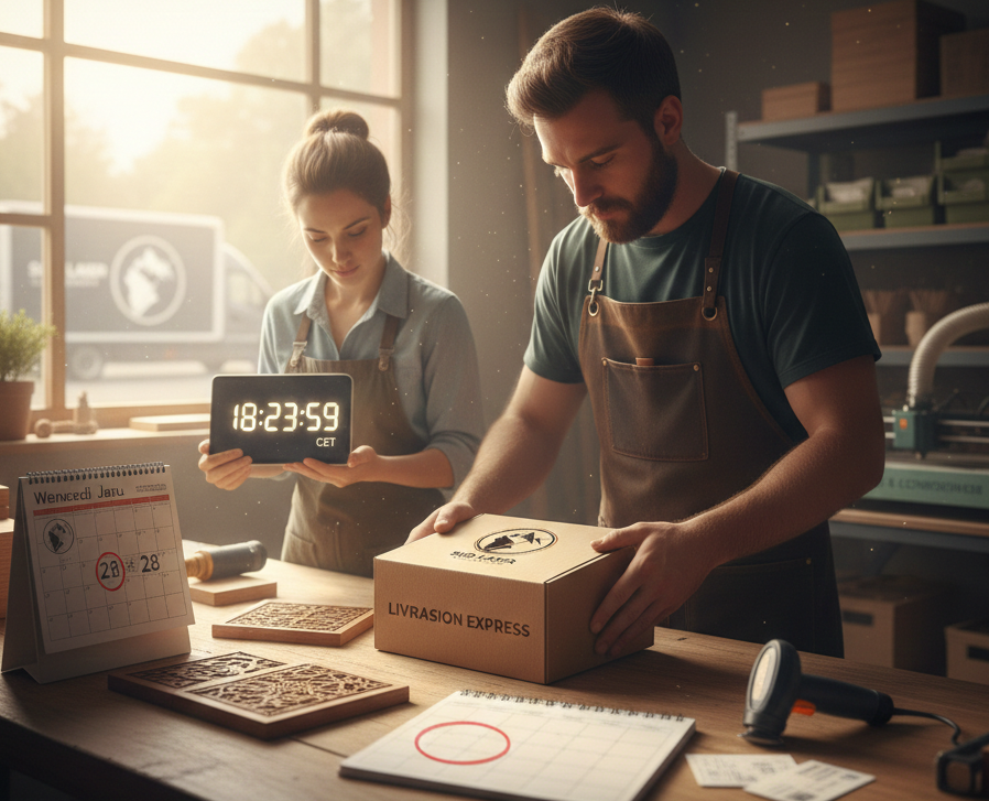 – Expédition sécurisée : Nos emballages sont étudiés pour protéger la finesse des impressions résine et la fragilité des découpes bois pendant le transport.